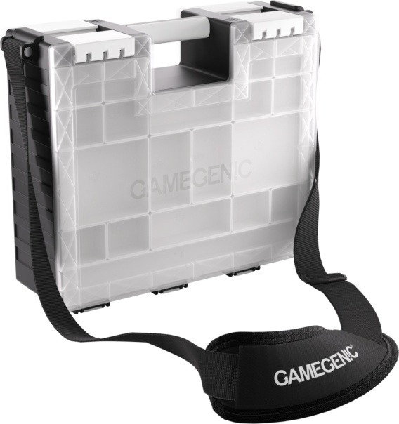Gamegenic: Game Castle to dwustronna walizka do przechowywania i transportowania różnego rodzaju gier planszowych i karcianych. Ten innowacyjny produkt pozwala z jednej strony przechowywać do 800 zakoszulkowanych kart, z drugiej strony posiada dedykowane miejsce na niezbędne akcesoria.